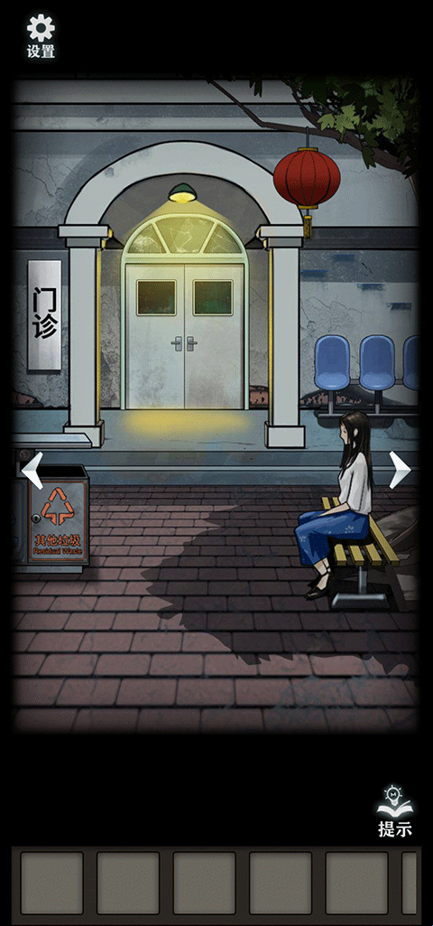 6、然后顺利进入精神病院,但是依旧有门锁进不去,环顾四周,在花坛获得弹珠,到院子墙上的环卫工衣服里找到钥匙。