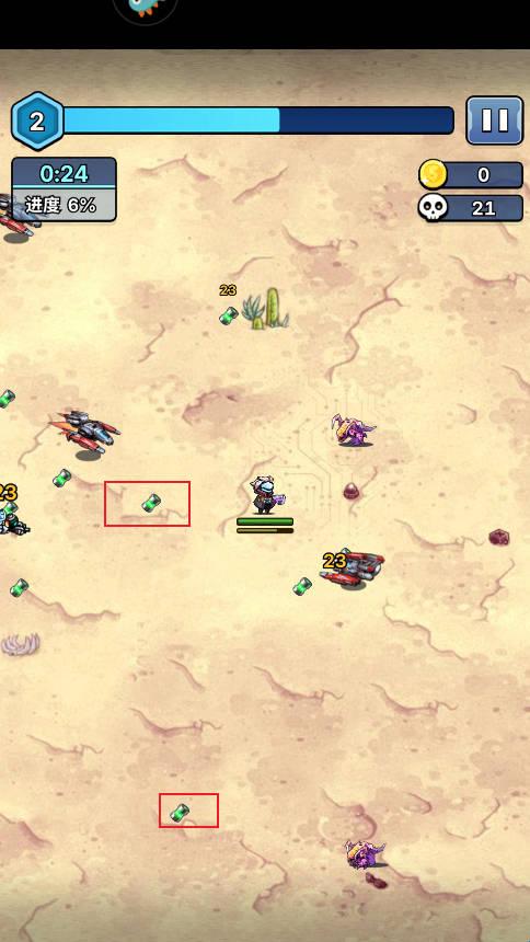 2、消灭敌人后会掉落经验电池,让你变得更强。