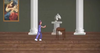 3、然后来到修女休息室,往右推这个凳子。