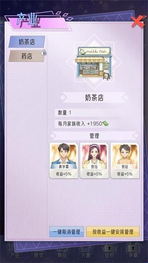 2、每一个选择都将编织属于你的豪门史诗,你既可操纵组织势力也能培养继承人的个性化兴趣与发展方向。