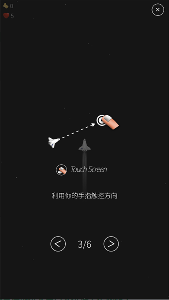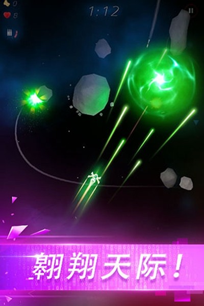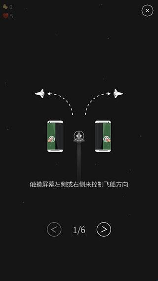 1、通过触摸屏幕左右两侧的不同区域,灵活控制飞船的飞行方向与移动轨迹。