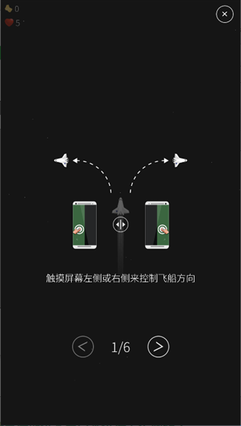 3、触摸屏幕左右两侧控制飞船方向