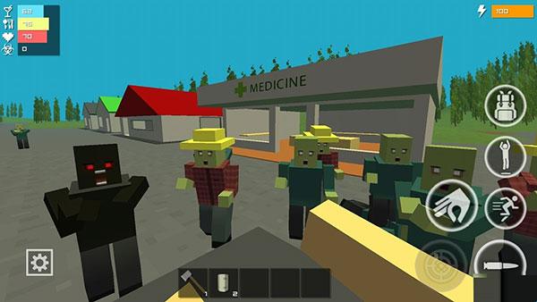 游戏以生存为挑战目标,我们的角色有血量、有体力、会饥饿、会口渴,我们在小镇中四处寻找食物和资源,当遇到僵尸的时候则将它们杀死,当然如果能避开这些僵尸,那么相信也没有人愿意承受危险去与之战斗。