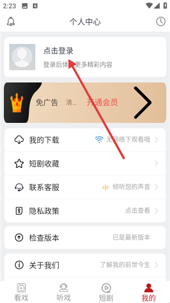 3、点击进入个人中心界面能看到头像区域,点击头像旁的入口可以进行登入操作,即可进行账号登录,登录后能更好地个性化使用APP,让使用体验直接拉满。