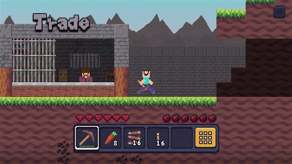 通过挖掘矿井收集资源,购买工具如新镐。